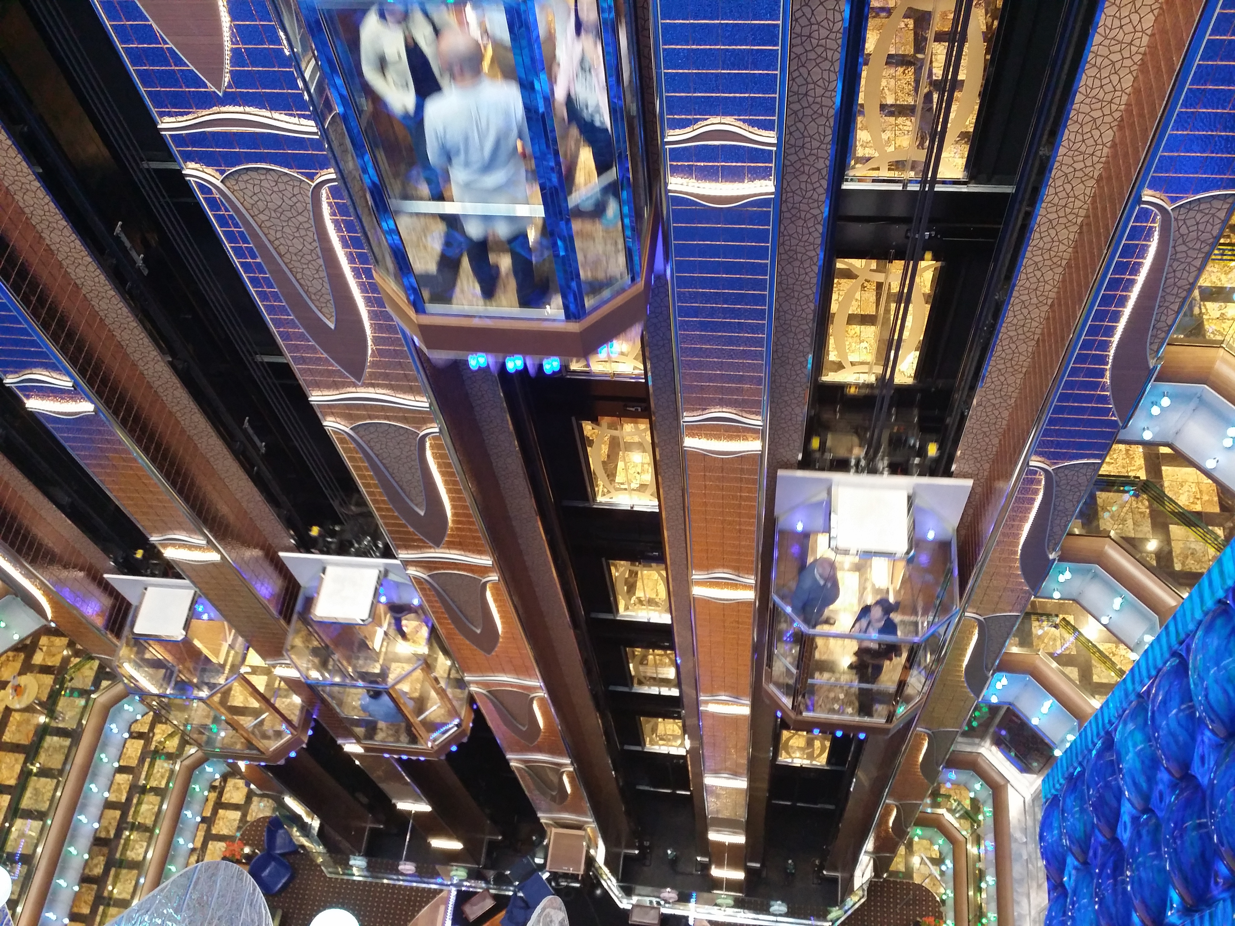 Hay comedores a ambos lados, junto a la piscina cubierta, en la terraza de popa…en fin, tienen mucha capacidad de personal.