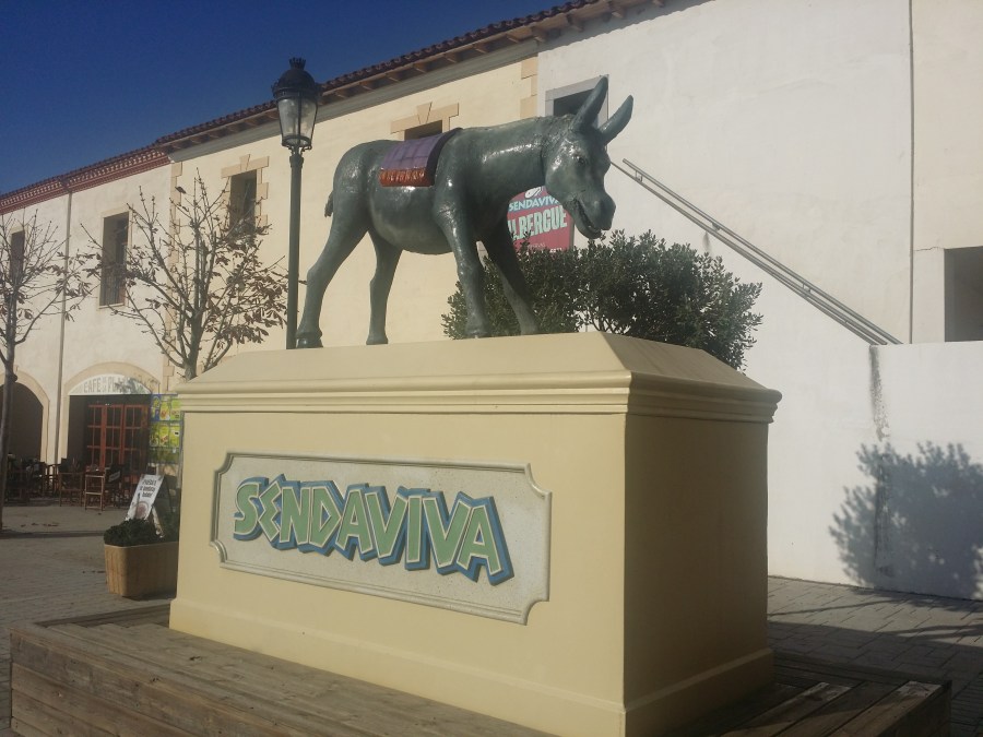 Nada más entrar al recinto nos encontramos con la mascota del parque, la burrita Palmira, esta estatua que vemos, no es una simple estatua…contiene una sorpresa muy divertida, y es que al introducir una moneda por un lateral sale disparada una pelota de goma, que expulsa la burrita tras levantar la cola, por el…trasero… jajajjaa…los niños deben colocarse tras ella y estar atentos para cazarla al vuelo.